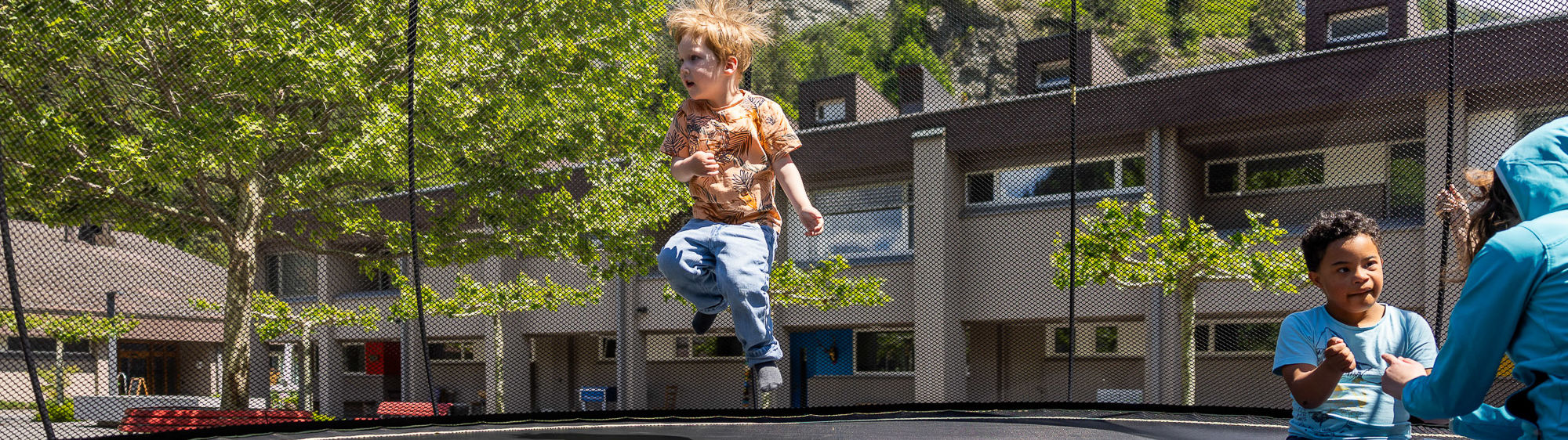 Unser Internat in Rothenbrunnen umfasst fünf geräumige und gut eingerichtete Wohnhäuser. Ein grosser Innenhof lädt zu Begegnungen und gemeinsamen Spielen ein. Hinter den Wohnhäusern gelangt man über eine Terrasse direkt in den Garten, zu Spielplätzen und einem kleinen Wäldchen mit Feuerstelle. Mal- und Werkräume, sowie eine grosse Spielwiese, eine Turnhalle mit Bühne und ein Hallenbad stehen ebenfalls auf dem Gelände zur Verfügung.