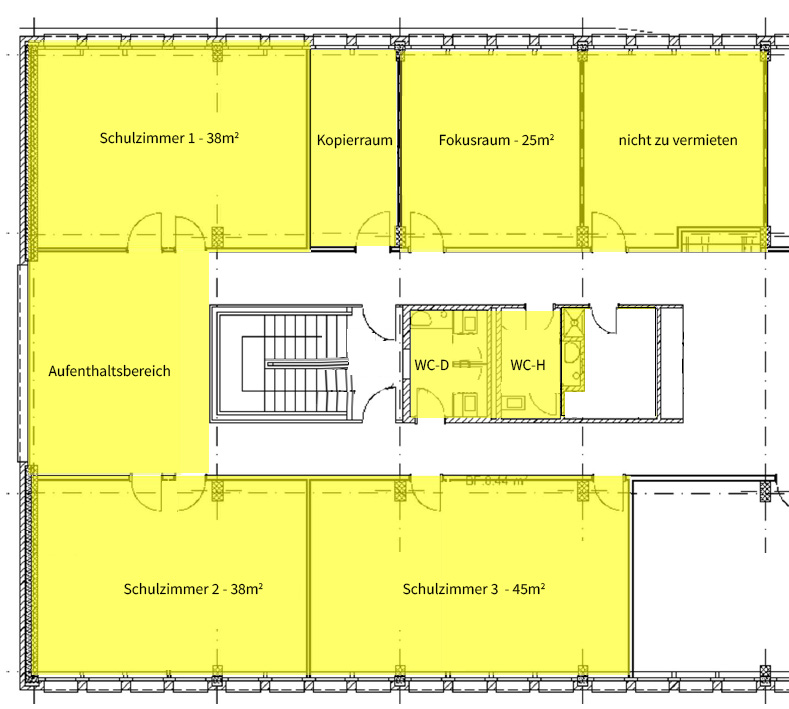 - Flexible Nutzung: Mieten Sie einzelne Räume oder alle vier Schulzimmer – ganz nach Ihrem Bedarf.